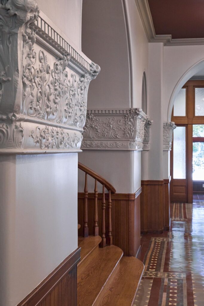 The project was a collaborative effort, including exploratory research of the building along with outreach and responses from administration and public input meetings. The final building assessment produced information required to develop project budgets and action plans. These plans proposed the stabilization and restoration of the building’s exteriors, expanding ADA accessible building access, and a full interior renovation of the office and amenity spaces throughout.