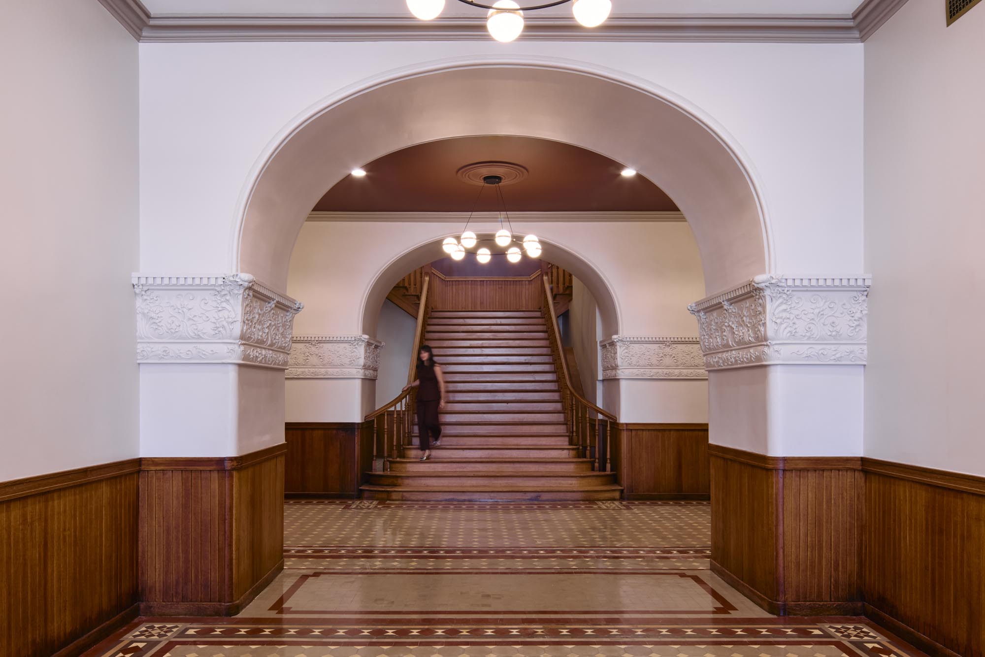 The interior underwent major renovations with new programming, new fixtures, and new finishes throughout. Care has been taken to select and source finishes that enhance the historic structure.